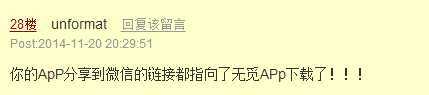 “你的APP分享到微信的链接都指向了无觅APP下载了!”