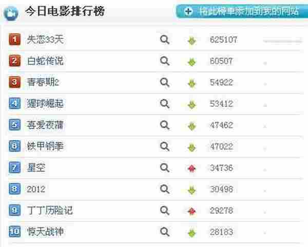 从比例上来看。还是相对比较中等的。关注的年龄分布也是以年轻人为准,更加从侧面印证了《失恋33天》在网络营销中的定位精准。我们在来看下百度风云榜的数据。