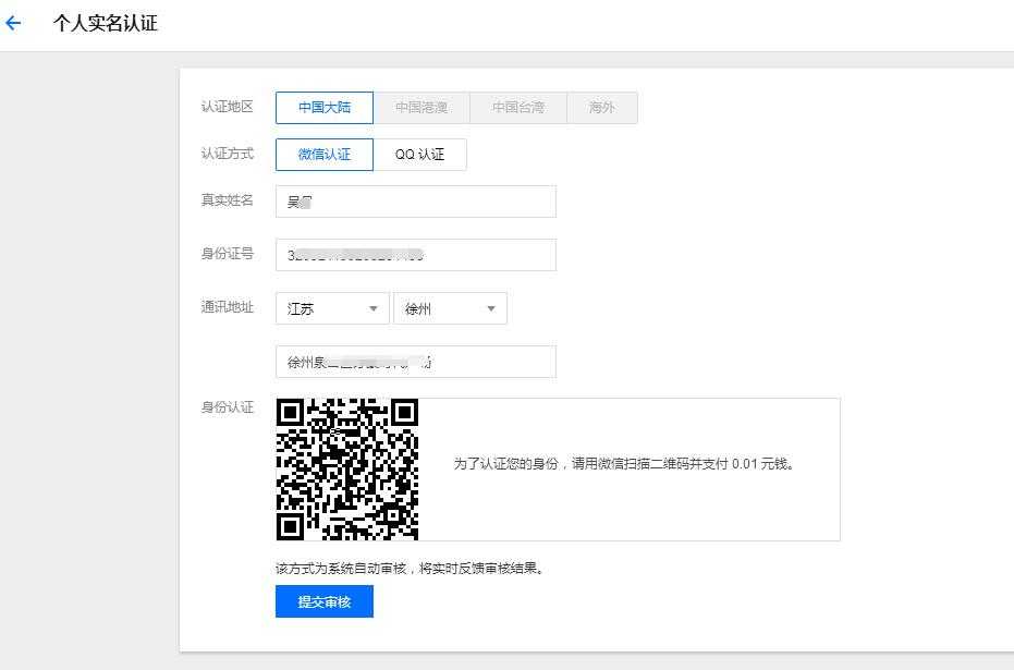 按照要求填写认证内容,并支付1分钱