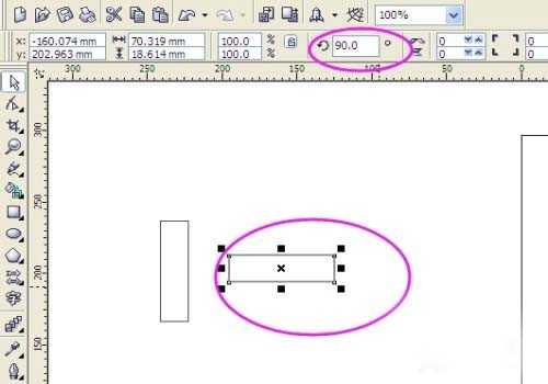 五、选择一个矩形,将其旋转为90度。如图: