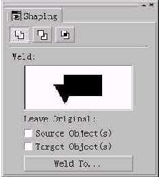 控制调板位于绘图区的右侧。C o r e l D R AW 9 中的众多控制调板都采用了拼合的方法,可将多个命令合在一个控制调板中,要使用控制调板中的某一个命令时,可单击此命令面板中的按钮调出此命令。如图5所示的S h a p i n g 调板中包含We l d 、Tr i m 、I n t e r s e c t 三个命令。