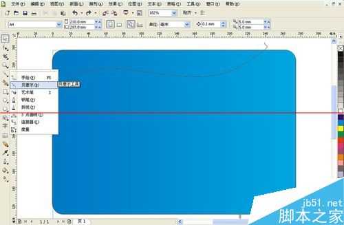 1、首先打开cdr,绘制背景,然后用贝塞尔工具勾出线条。