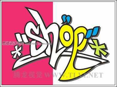“形状”工具,对绘制的路径节点进行调整。然后通过按下键,将其放到所有字母图形下面,并填充为白色,轮廓宽度为2mm。