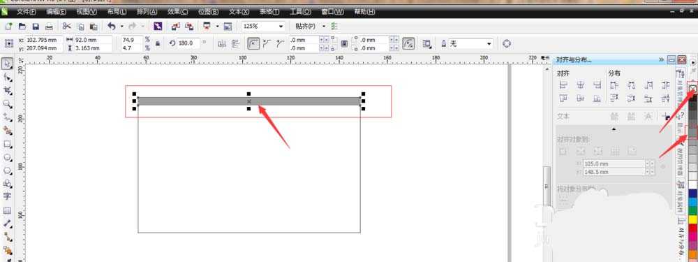 5、复制一个并调整大小,大小为92x11.827mm,填充灰色,去掉轮廓线,在右边颜色工具栏点击那个叉叉,用右键既可以去除外边框。再把这个灰色复制一个,往下移动,填充绿色。大小为 如图所示绘制。