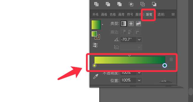 3、打开渐变面板,设置一个从黄色到绿色的渐变。