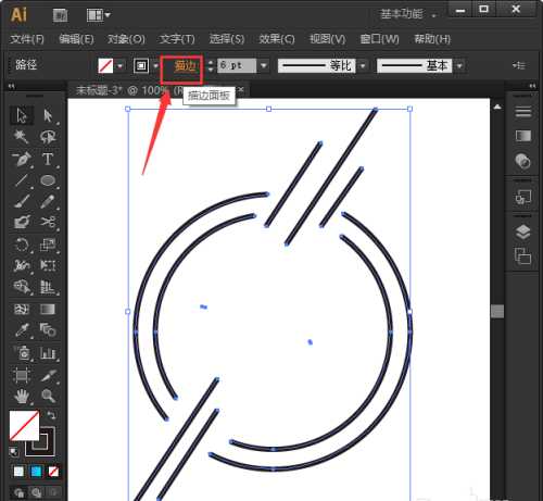 4、接下来,我们把图形和线条全部选中,然后点击【描边面板】