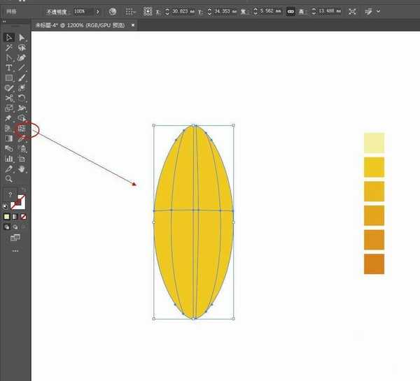 2、填充颜色,再准备一组渐变色。用网格工具添加锚点。