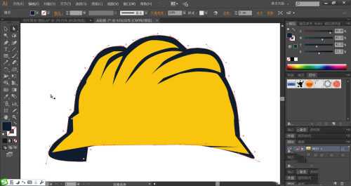 使用钢笔画出安全帽的内外路径,重点是帽子顶端的起伏路径,再用橙黄色与蓝黑色分别填充帽子的正面与背面的边缘路径。