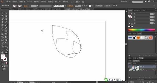 1、使用钢笔工具绘制出荷花的花骨朵的基本轮廓路径,包括上面的花瓣与下方的叶片路径。