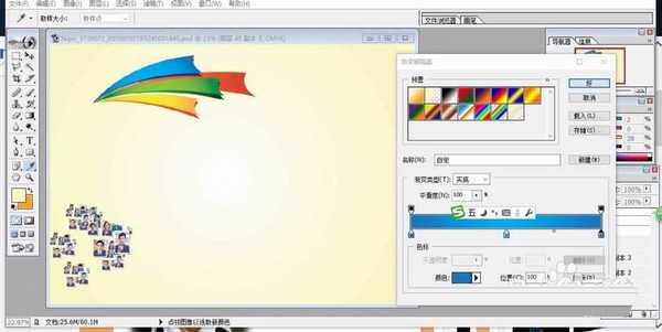 8、继续在图片当中置入笑脸的图片,我们设置成半透明的图层效果,并分布到不同的位置。