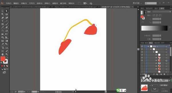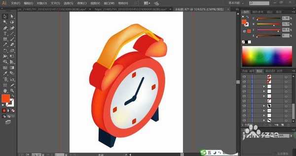 7、最后,我们使用网格工具点击一下时钟的手柄左侧面做出橙黄色的渐变效果,点击一下振铃做出红色的渐变效果,点击一下钟面做出灰白色的渐变效果,完成红色时钟图标设计。