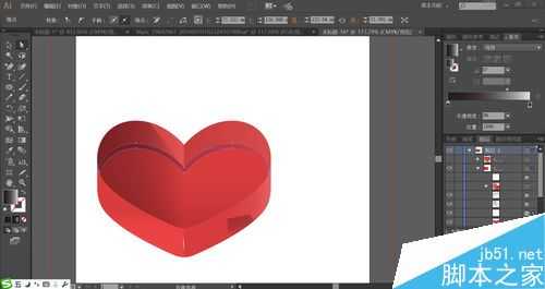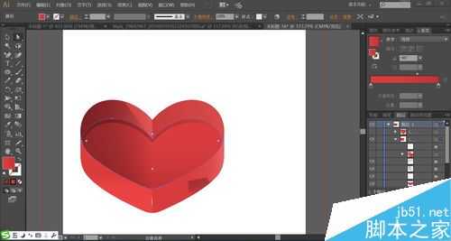 这一步,我们用大红色的渐变分别填充盒盖的上方与左右侧面,在盒盖的边缘用半透明的灰白色渐变填充,让其呈现高光效果。