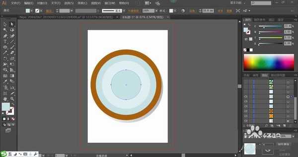 2、首先,我们用暗茶色填充碟子的主体路径,再用灰黑色的渐变填充碟子的阴影,设置阴影的透明度为33%左右。
