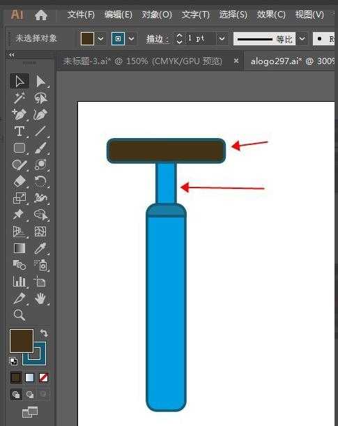 3、画一横一纵两个矩形,如图摆好。顶部的矩形上添加锚点,调整成如图形状做手柄。