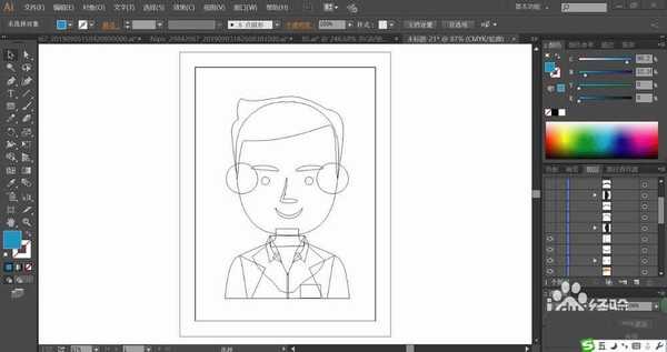1、先用钢笔画出人物的脸蛋的基本轮廓,重点画出发型与脸蛋上的眼晴与嘴巴,还有衬衫的基本轮廓。