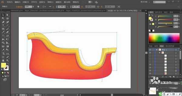 4、使用网格工具为雪橇的红色区域做出红色渐变效果,为雪橇的橙色区域做出橙色渐变的效果。