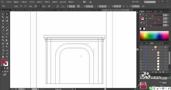 1、先用矩形工具画出火炉的方形结构与内外层次路径。