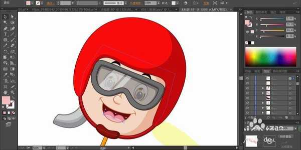 1、先用钢笔画出小飞行员的基本动作轮廓,再把服饰的细节元素一一绘制出来,最后,我们用钢笔描绘出服饰与皮肤上面的光线的高光与暗光的不同区域路径。