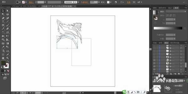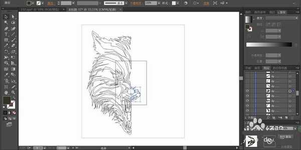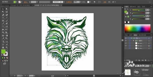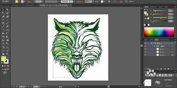 6、复制左侧脸部的不同色彩的线条路径到右侧,从而让狼的脸部的丰富色彩效果呈现出来。
