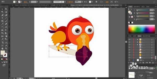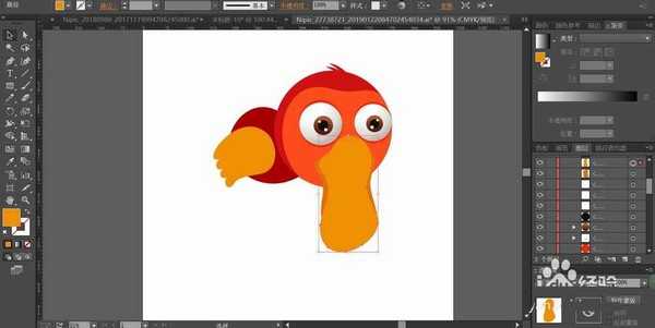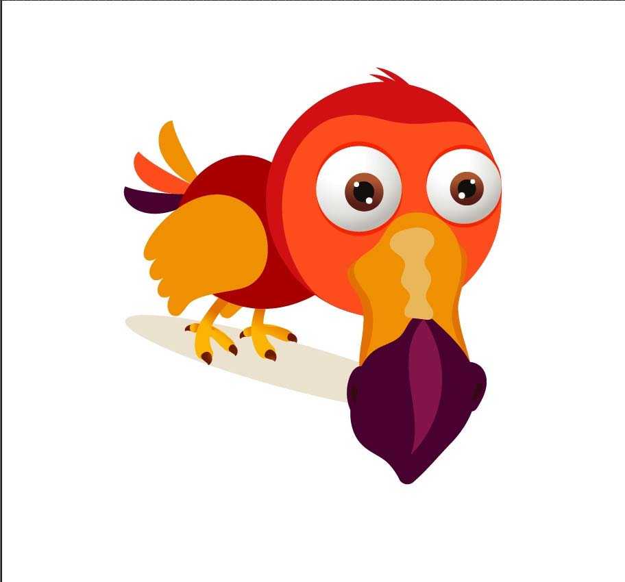 2、用桔红色与红棕色搭配填充鸟的头部与身体,再用橙红色与橙黄色填充鸟的脸部与翅膀。