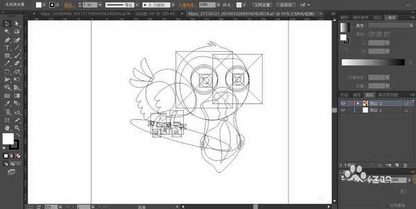 5、这一步,我们用橙色的渐变与紫红色的渐变填充鸟的腿与脚趾元素的路径。