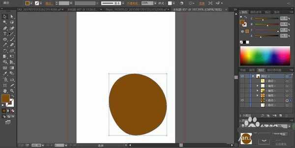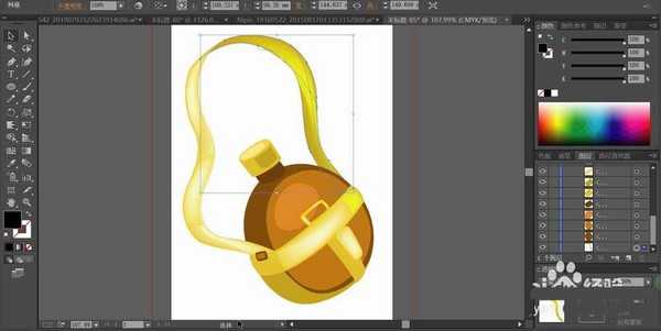2、用黄棕色填充水壶的主体路径,并把这一层放到最后。
