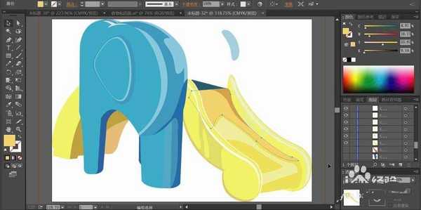 7、最后,我们用不同色调的蓝色与黄色把滑梯的剩余部分也一一绘制出来,从而完成整个滑梯素材设计。