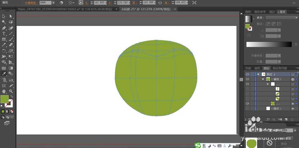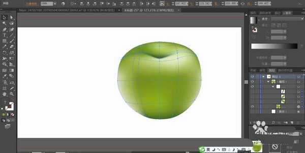 1、先用钢笔画出苹果的基本路径,再用网格工具让其成为多个不同的色彩区域路径。