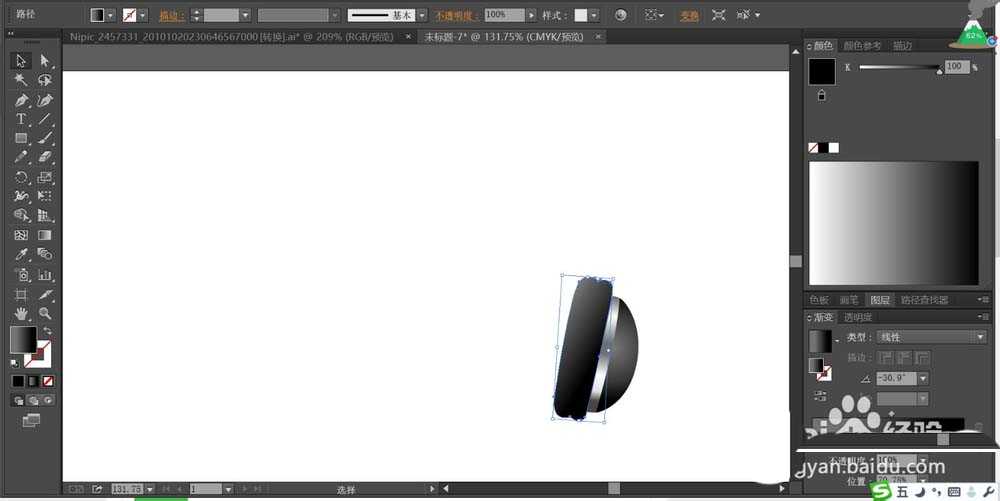 2、画出听筒的金属部分之后,我们再用钢笔画出听筒的左侧与右侧的其它元素,分别填充深黑色的渐变与黑色的渐变。