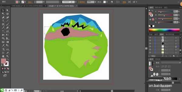 2、接着,我们画出背景中的山森,用棕色填充高山所在的区域。