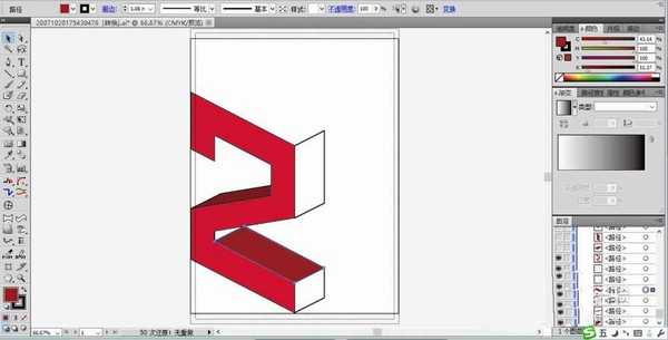 6、在顶端画出一个四边形来补充顶端的正方形的效果,我们用中性的粉红色来填充,数字标志设计完成。