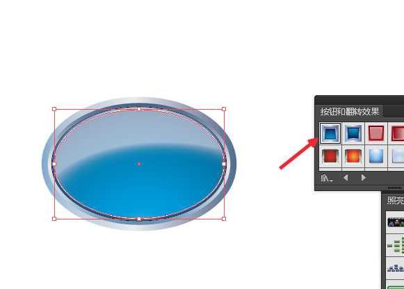 3、在弹出的面板中选择一个按钮效果,然后拖到面板中,调整大小,如图。