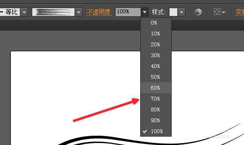 7、我们单击菜单栏里的画笔工具,点击我们选择的画笔类型,从左到右绘出一条曲线,如图。