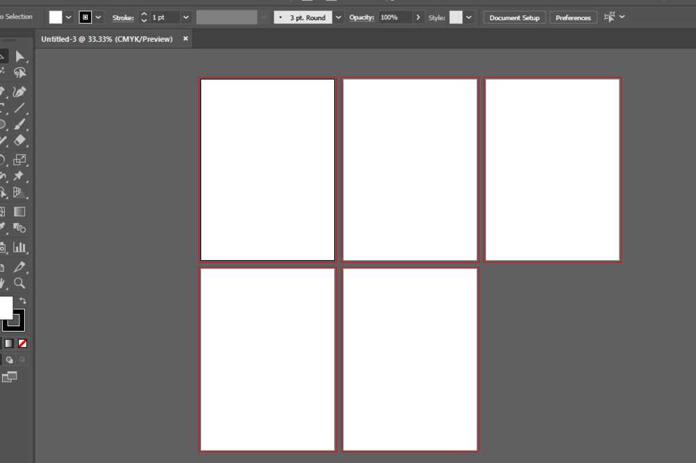 2、然后我们就进行到编辑界面了,因为我们在前面设置了5个画板,所以就有5个页面。如果你的封面和封底都要,那么你的内容就只有3页了,自己计算好了。