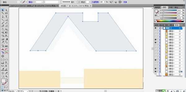 1、先用钢笔画出房子的屋顶结构,我们用锚点来修正一下曲边。