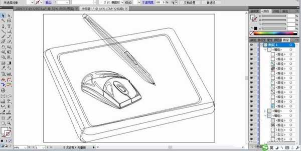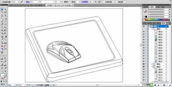 2、继续用钢笔画出鼠标的细节结构,左右两个按键,还有中间的滚轮,还有鼠标上面的高光区域与暗光区域。