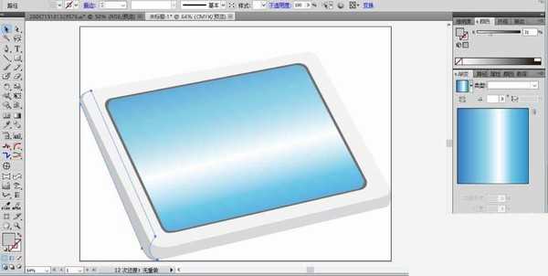 4、用蓝色的渐变与灰白色搭配填充掌上电脑的屏幕与边框,让高光呈现在屏幕上面,各个侧面的灰色的明度不同。