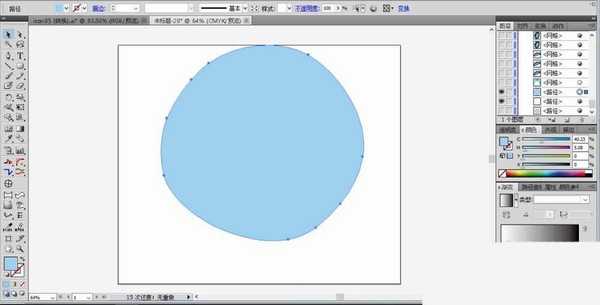 1、使用钢笔画出第一个不规则圆形的路径轮廓,我们用天蓝色填充这个不规则圆形。