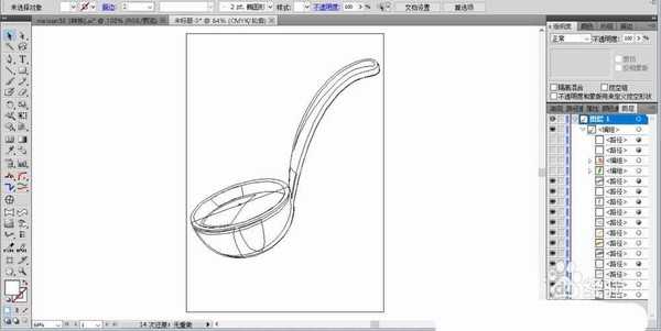 2、接着,我们用钢笔画出勺子的立体侧面,还有勺子倍的一些细节路径。