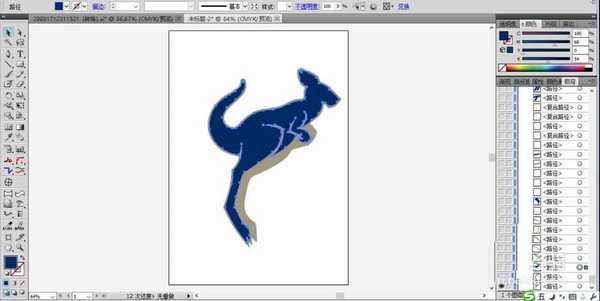 2、复制这个袋鼠的身体轮廓路径再缩小为90%左右,我们填充蓝黑色。