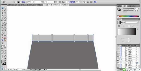 2、继续使用钢笔画出长裤上方的皮带部分的基本路径,还有重点元素皮带扣的基本路径,我们用专用的灰白色填充,用专用的灰黑色描边。