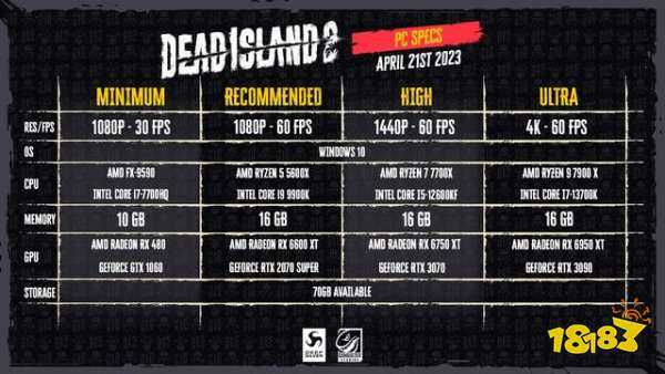 若想以4K分辨率及最高画质玩,官方推荐酷睿i5-13700K或Ryzen 9 7900X处理器,搭配Radeon RX 6950XT或GeForce RTX 3090显卡。