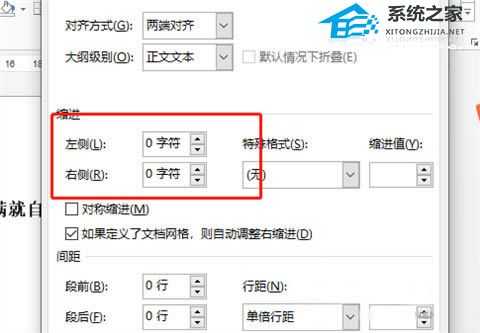 此时,只要同样选中内容,之后还是按照上述步骤将缩进字符左右侧都进行调整即可。
