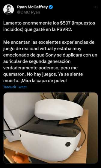 他在推文中表示:“我非常后悔花了597美元(含税)购买PSVR2。