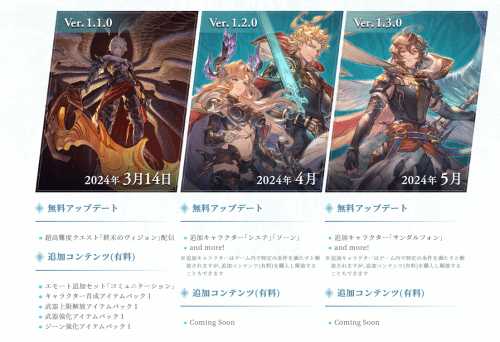 《碧蓝幻想Relink》新版本1.1.0将在3月14日推出,届时将推出高难度任务“终末的幻象”;1.2.0版本4月推出,添加角色索恩和希耶提;1.3.0版本5月推出,添加角色圣德芬。
