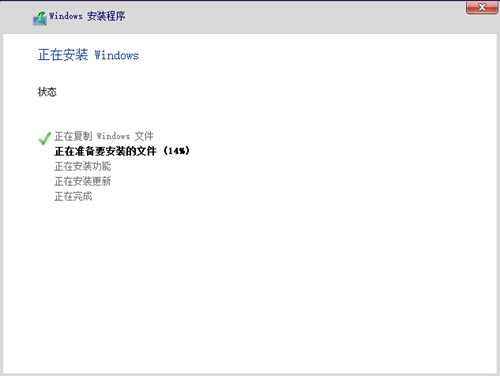 3、选好后系统将开始安装,我们只需耐心等待(注意中途不要关闭电脑)。