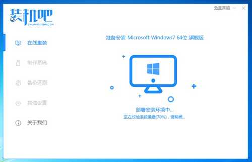 1、首先要下载一个“装机吧重装系统软件”,然后打开该软件,在在线重装页面下选择win7系统,然后点击安装此系统。