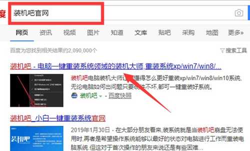 2、用浏览器搜索装机吧官网,在官网内下载装机吧一键重装系统。