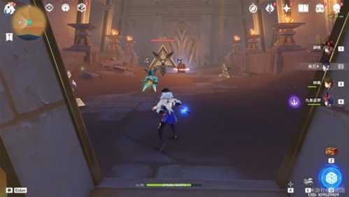 重新打开风场并飞到四个雷元素方碑上方,按照顺序激活它们,获得宝箱后,沿着身后的楼梯继续前行,打开门后,会发现一个怪物守卫的宝箱,打败怪物后激活宝箱,这样大门就可以打开了。