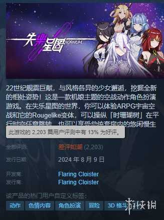 目前在Steam平台上,这游戏的2000+评价当中仅有13%的好评率,可以说是差点就俯冲倒数第一。